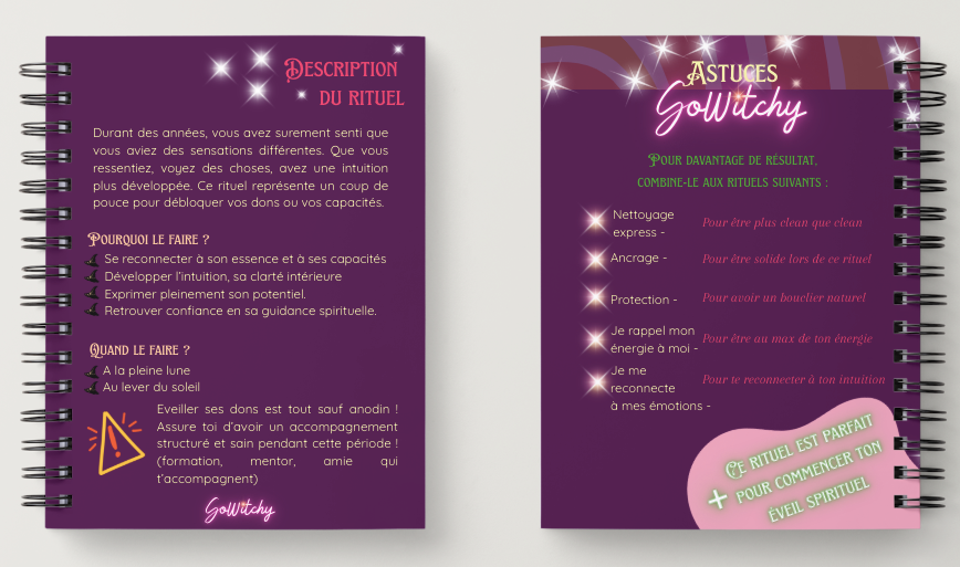 Ce rituel t’aide à réveiller ton potentiel spirituel et énergétique, à développer ton intuition et tes capacités naturelles (clairvoyance, clairaudience, clairsentience, prémonition…).